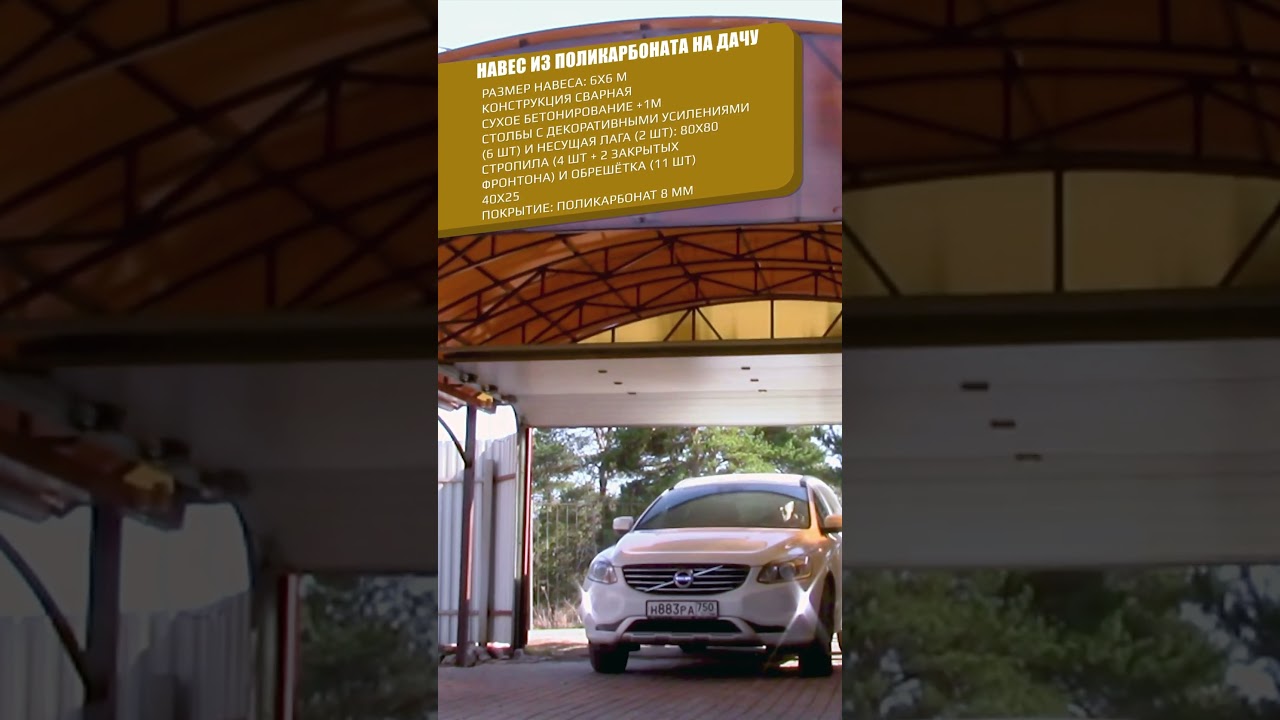 Навес из поликарбоната на две машины 6х6 | «Спецкаркас» - изготовление, доставка и монтаж навесов